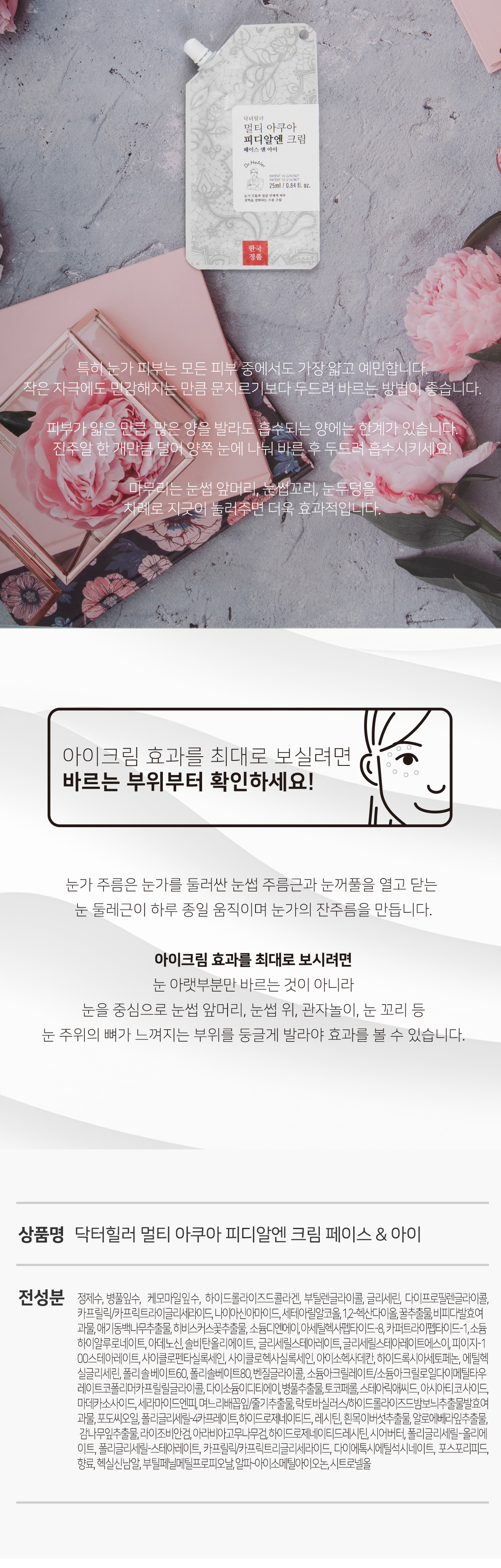 | 전성분 | 정제수, 병풀잎수, 캐모마일꽃수, 하이드롤라이즈드콜라겐, 부틸렌글라이콜, 글리세린, 다이프로필렌글라이콜, 카프릴릭/카프릭트라이글리세라이드, 나이아신아마이드, 세테아릴알코올, 1,2-헥산다이올, 꿀추출물, 비피다발효여과물, 애기동백나무추출물, 히비스커스꽃추출물, 소듐디엔에이1,000ppb, 아세틸헥사펩타이드-8, 카퍼트라이펩타이드-1, 소듐하이알루로네이트, 아데노신, 솔비탄올리에이트, 글리세릴스테아레이트, 글리세릴스테아레이트에스이, 피이지-100스테아레이트, 사이클로펜타실록세인, 사이클로헥사실록세인, 아이소헥사데칸, 하이드록시아세토페논, 에틸헥실글리세린, 폴리솔베이트60, 폴리솔베이트80, 벤질글라이콜, 소듐아크릴레이트/소듐아크릴로일다이메틸타우레이트코폴리머카프릴릴글라이콜, 다이소듐이디티에이, 병풀추출물, 토코페롤, 스테아릭애씨드, 아시아티코사이드, 마데카소사이드, 세라마이드엔피, 며느리배꼽일/줄기추출물, 락토바실러스/하이드롤라이즈드밤보늬추출물발효여과물, 포도씨오일, 폴리그릴세릴-스테아레이트레세틴, 카프릴릭/카프릭트리글리세라이드, 다이에톡시에틸석시네이트, 포스포리피드, 향료, 헥실신남알, 부틸페닐메틸프로피오날, 알파-아이소메틸아이오논, 시트로넬올 |