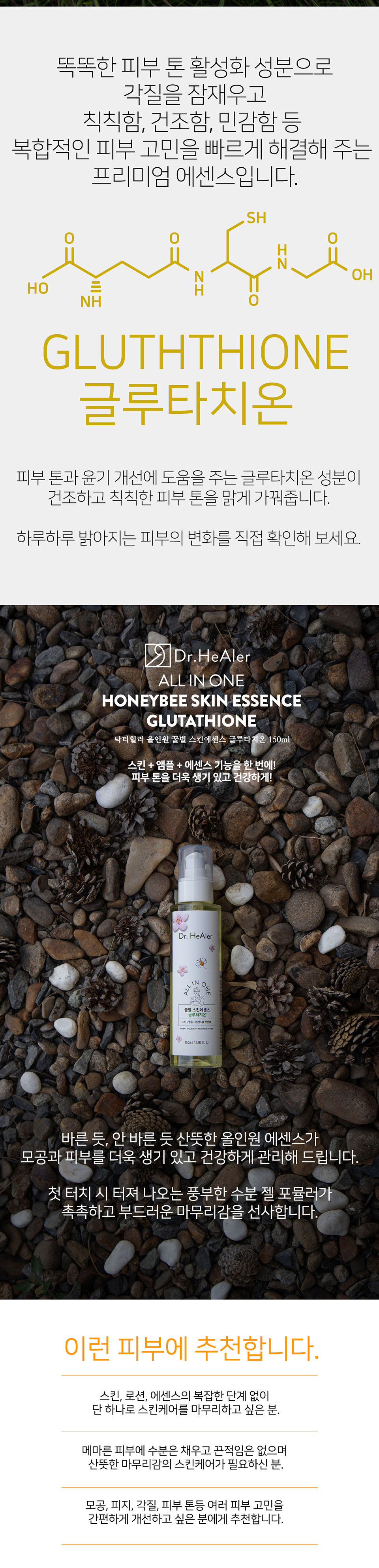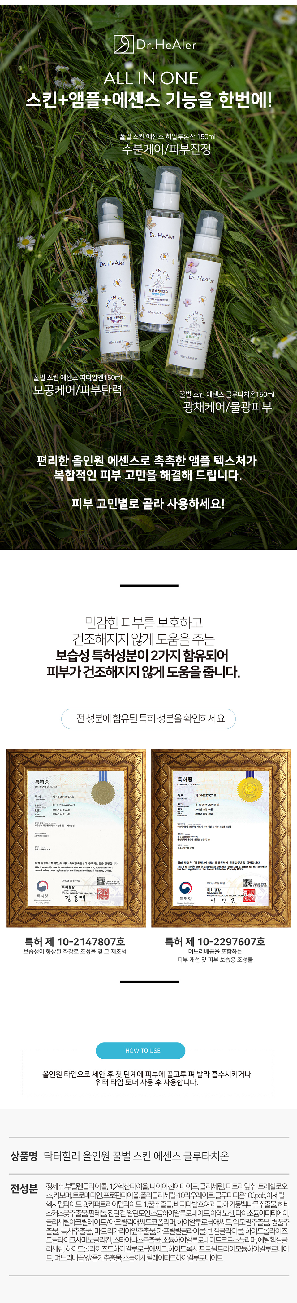 | 전성분 | 정제수, 부틸렌글라이콜, 1,2헥산다이올, 나이아신아마이드, 글리세린, 티트리잎수, 트레할로오스, 카보머, 트로메타인, 프로판다이올, 폴리글리세릴-10라우레이트, 글루타티온100ppb, 아세틸헥사펩타이드-8, 카퍼트라이펩타이드-1, 꿀추출물, 비피다발효여과물, 애기동백나무추출물, 히비스커스꽃추출물, 판테놀, 잔탄검, 알란토인, 소듐하이알루로네이트, 아데노신,다이소듐이디티에이, 글리세릴아크릴레이트/아크릴릭애씨드코폴리머, 하이알루로닉애씨드, 약모밀추출물, 병풀추출물, 녹차추출물,마트리카리아잎추출물, 카프릴릴글라이콜, 벤질글라이콜, 하이드롤라이즈드글라이코사미노글리칸, 스타아니스추출물, 소듐하이알루로네이트크로스폴리머,에틸헥실글리세린, 하이드롤라이즈드하이알루로닉애씨드, 하이드록시프로필트라이모늄하이알루로네이트, 소듐아세틸레이티드하이알루로네이트 |