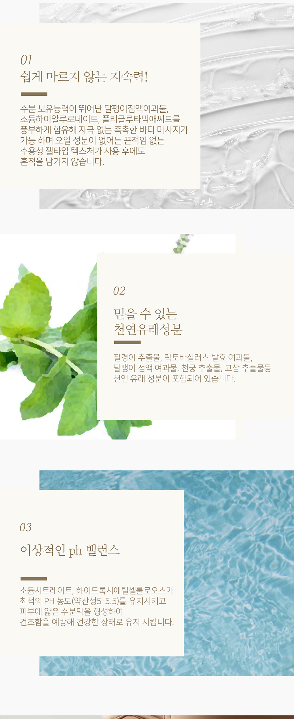 건조한 피부를 위한 수용성 바디 밸런스 젤