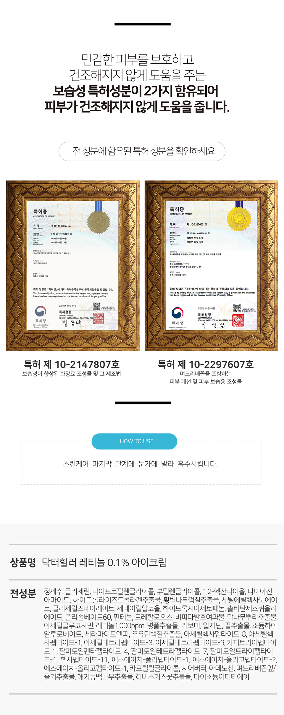 | 사용방법 | 스킨케어 마지막 단게에서 눈가 피부에 골고루 펴 발라 줍니다. |