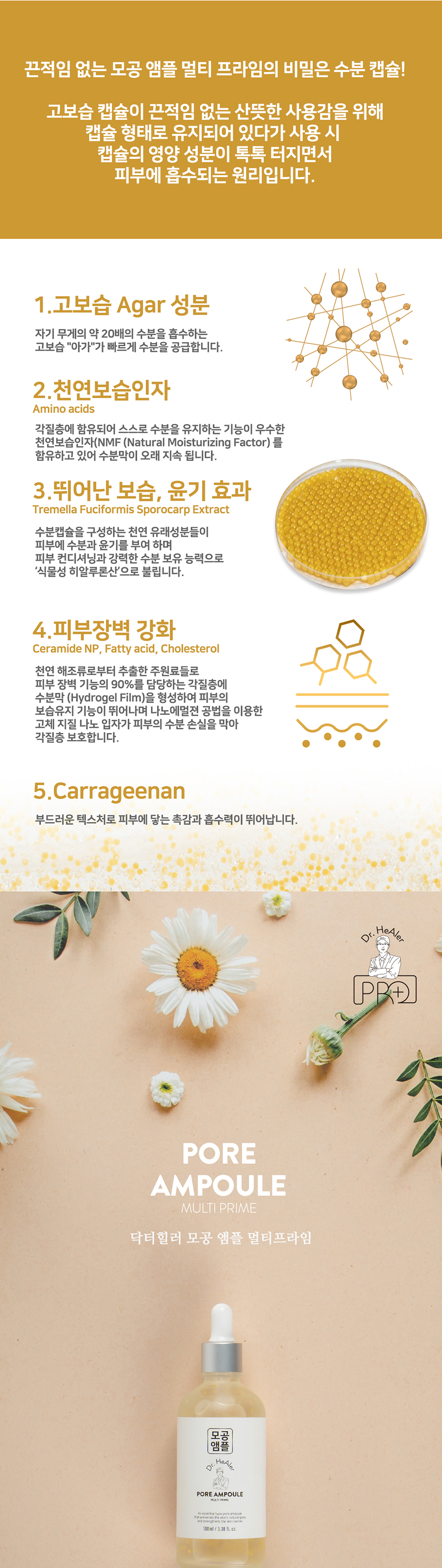 | 전성분 | 정제수, 글리세린, 다이프로필렌글라이콜, 부틸렌글라이콜, 1,2-헥산다이올, 알로에베라잎추출물, 아이리쉬모스가루, 아가, 아크릴레이트/C10-30알킬메타크릴레이트코폴리머, 트로메타민, 페러스옥사이드, 젤란검, 병풀추출물, 레몬추출물, 소듐하이알루로네이트, 밤부사 불가리스잎추출물, 소듐디엔에이, 티트리잎수, 우유엑소좀, 애기동백추출물, 히비스커스꽃추출물, 꿀추출물, 비피다발효여과물, 카퍼트라이펩타이드-1, 아세틸헥사펩타이드-8, 잔탄검, 카보머, 알지닌, 하이드록시에틸셀룰로오스, 알란토인, 판테놀, 나이아신아마이드, 다이포타슘글리시리제이트, 다이소듐이디티에이, 향료, 헥실신남알 |